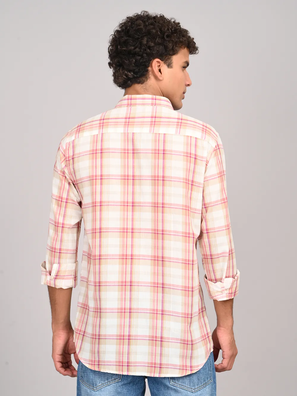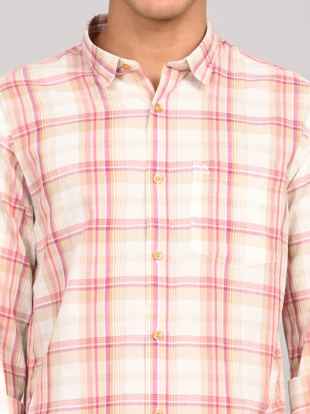 ATARAXIA Beige & Cream Checked Full Sleeve Regular Fit Cotton Shirt for Men