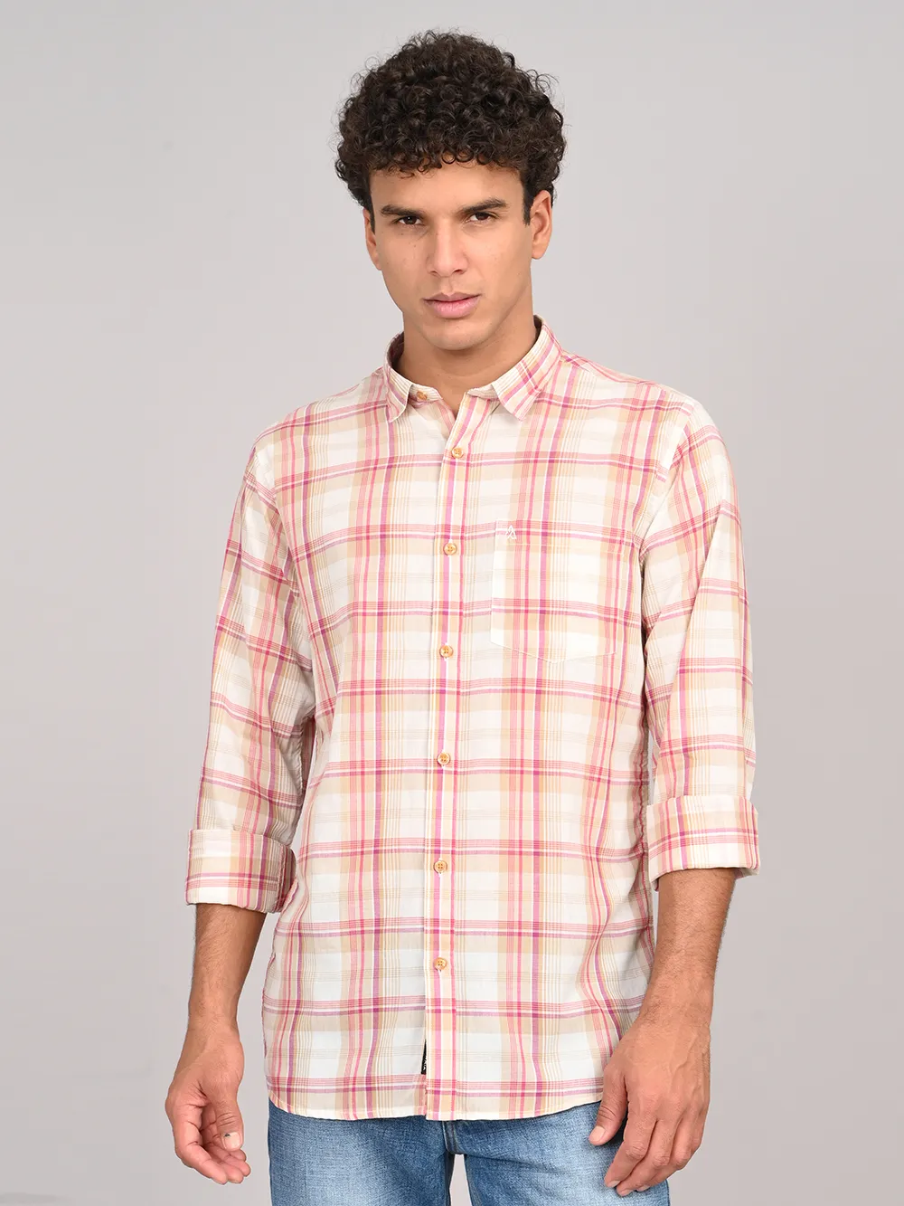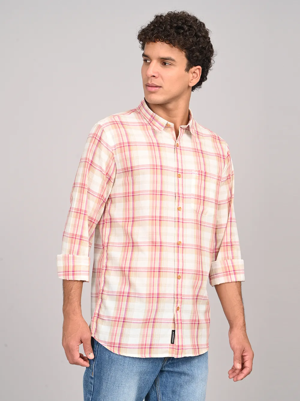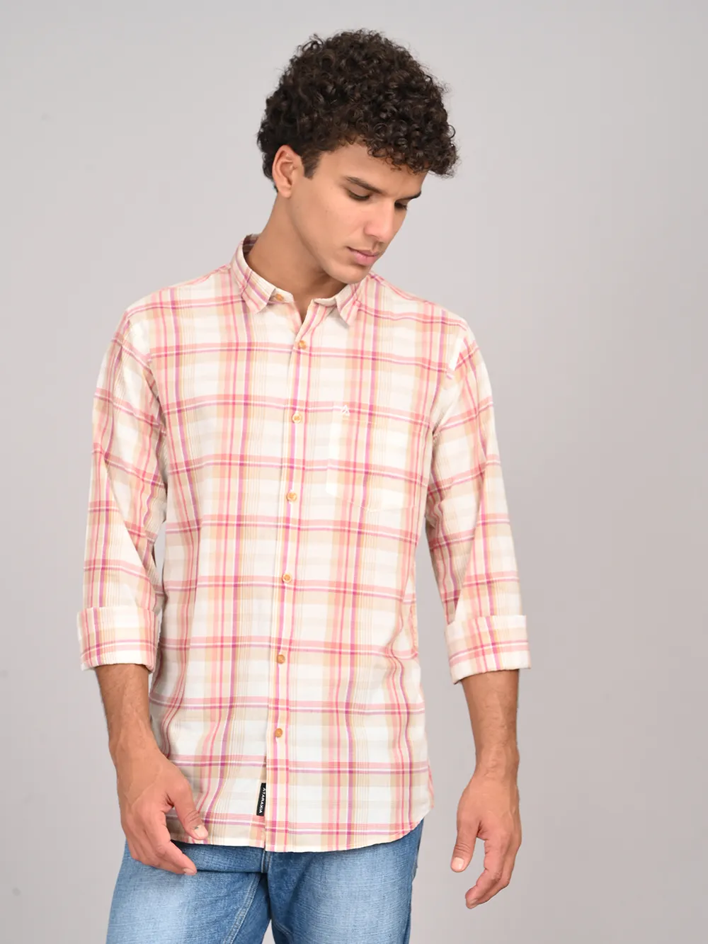 Beige & Cream Checked Full Sleeve Regular Fit Shirt