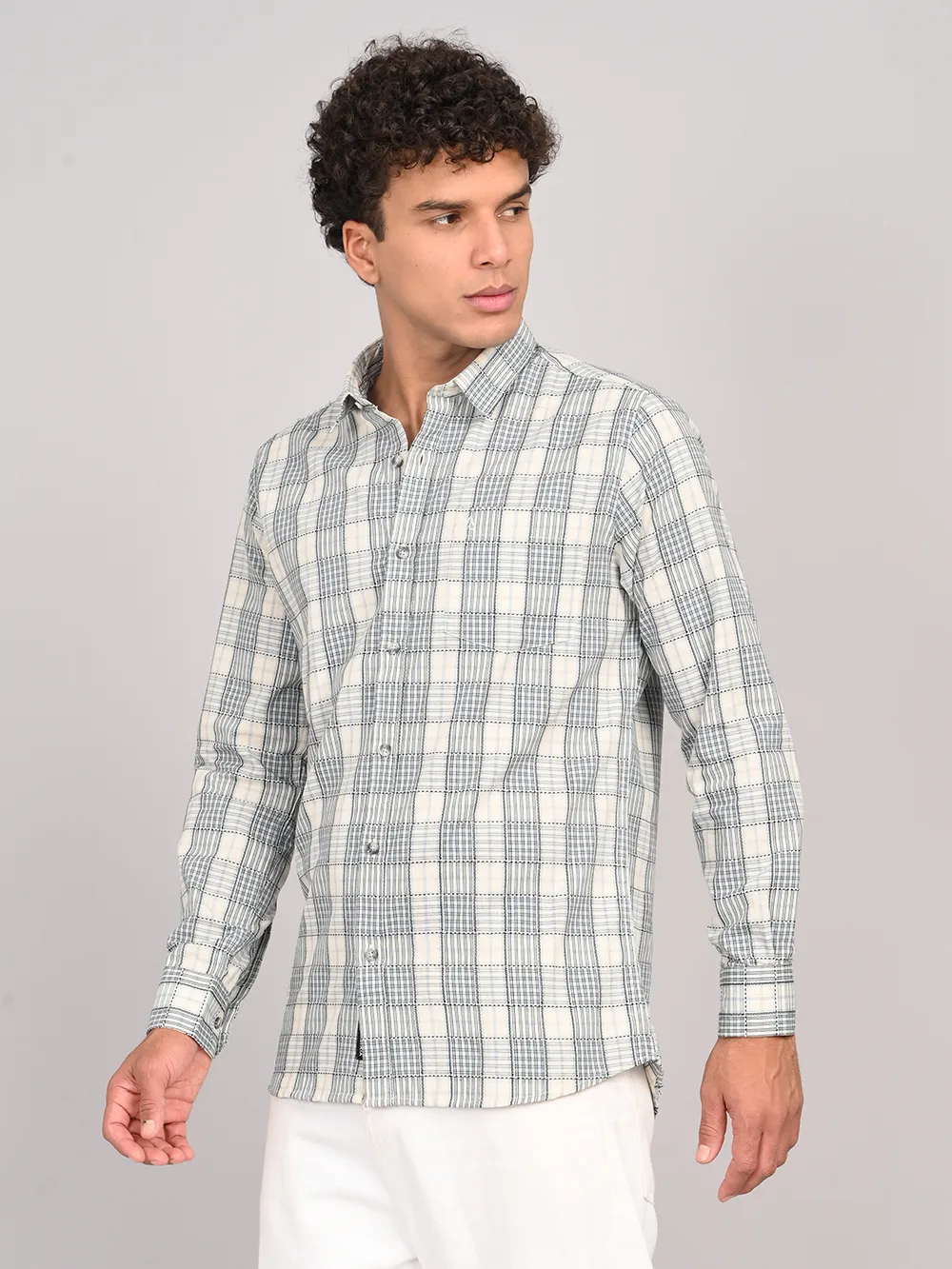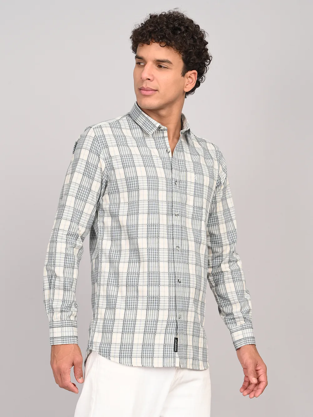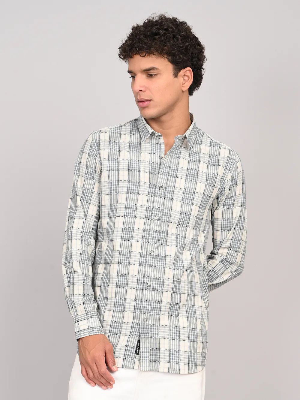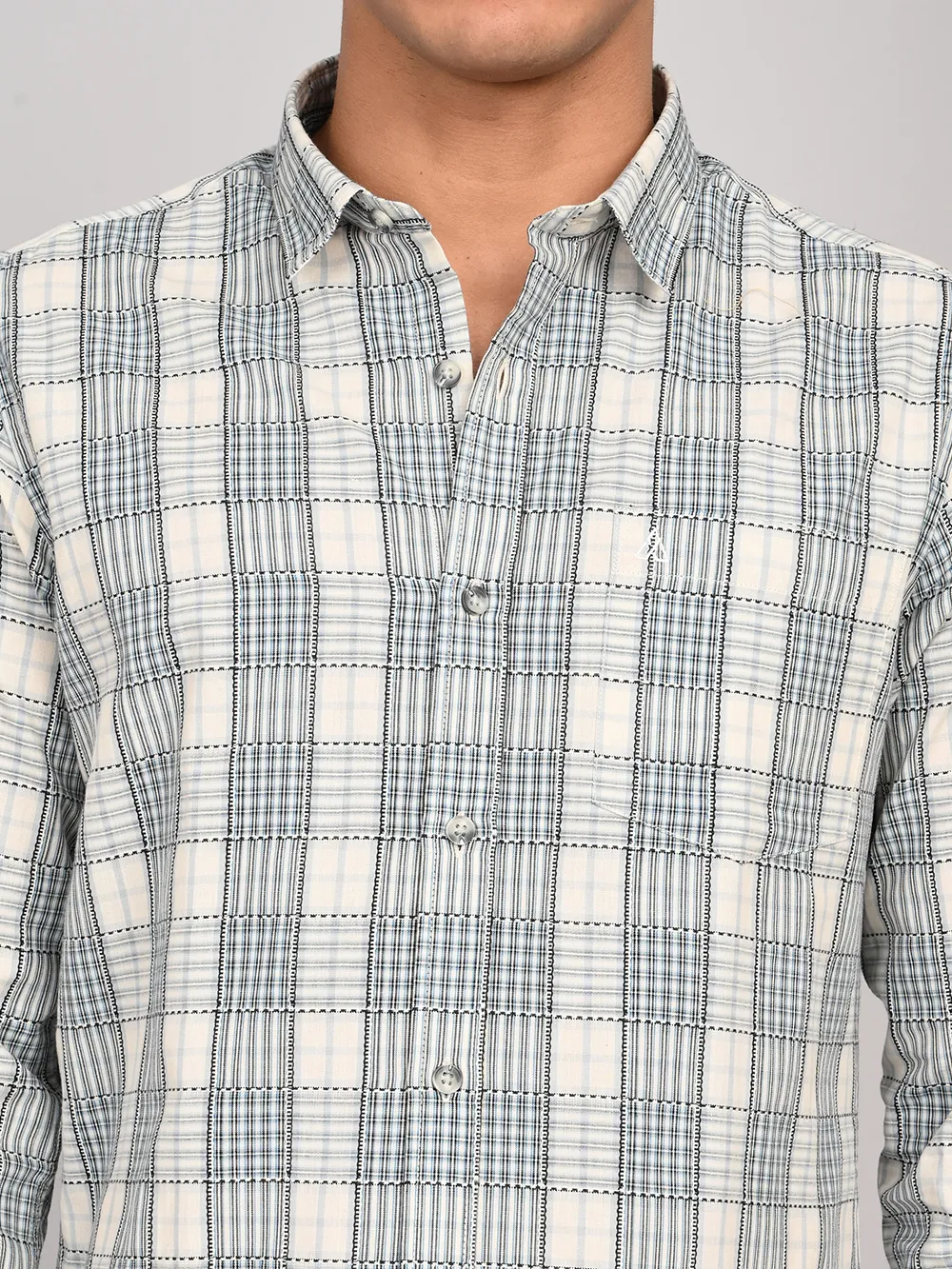 ATARAXIA Presents Cream & Black Checks Cotton Shirts for Men.
