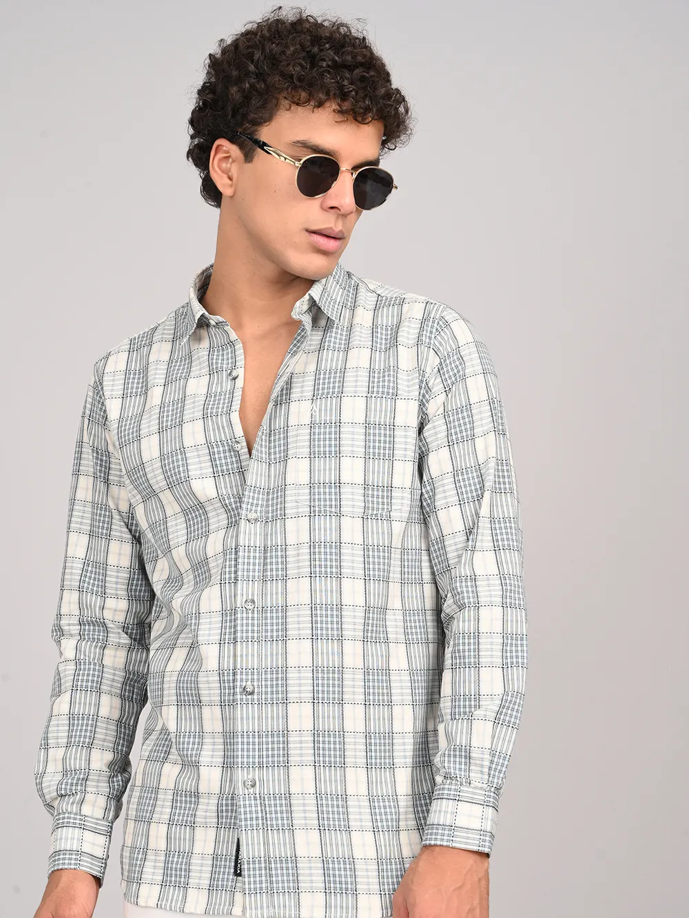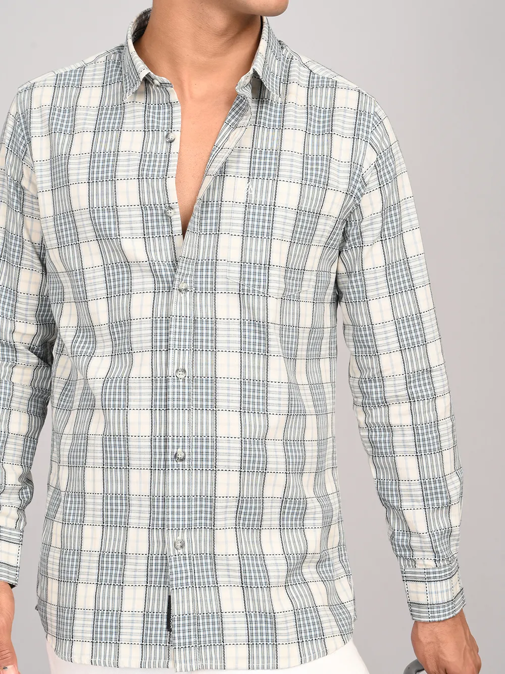 These men’s shirts feature full sleeves and a smart collar style. The captivating combination of cream and black checks creates a striking visual appeal that is sure to turn heads wherever you go. Made from high-quality cotton, these shirts offer exceptional comfort and breathability, making them perfect for any occasion. Whether you’re attending a formal event or enjoying a casual outing with friends, these shirts effortlessly blend style and comfort to elevate your look.