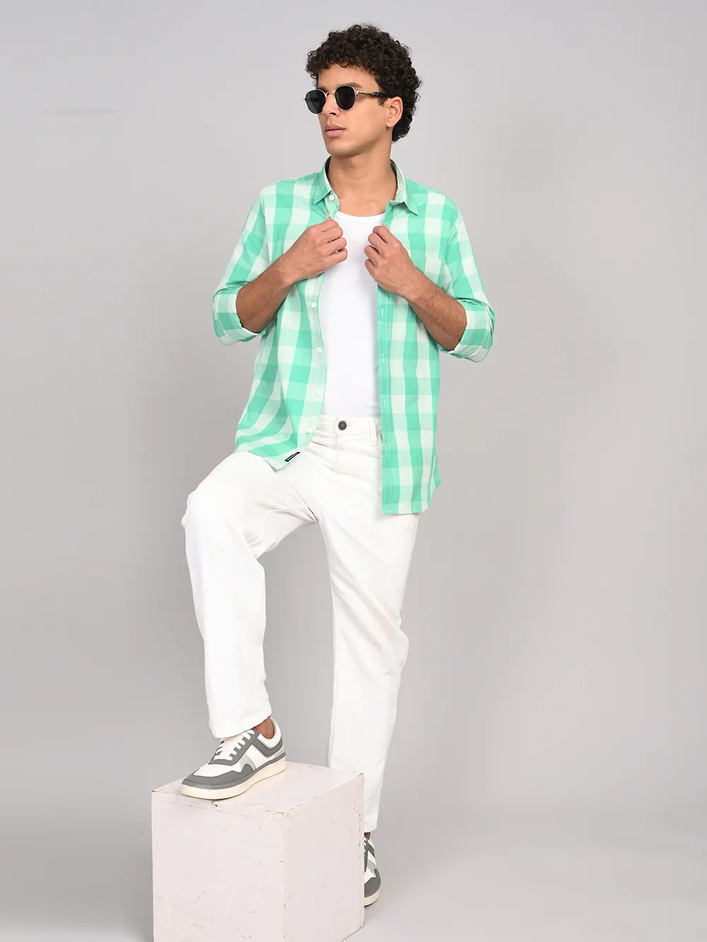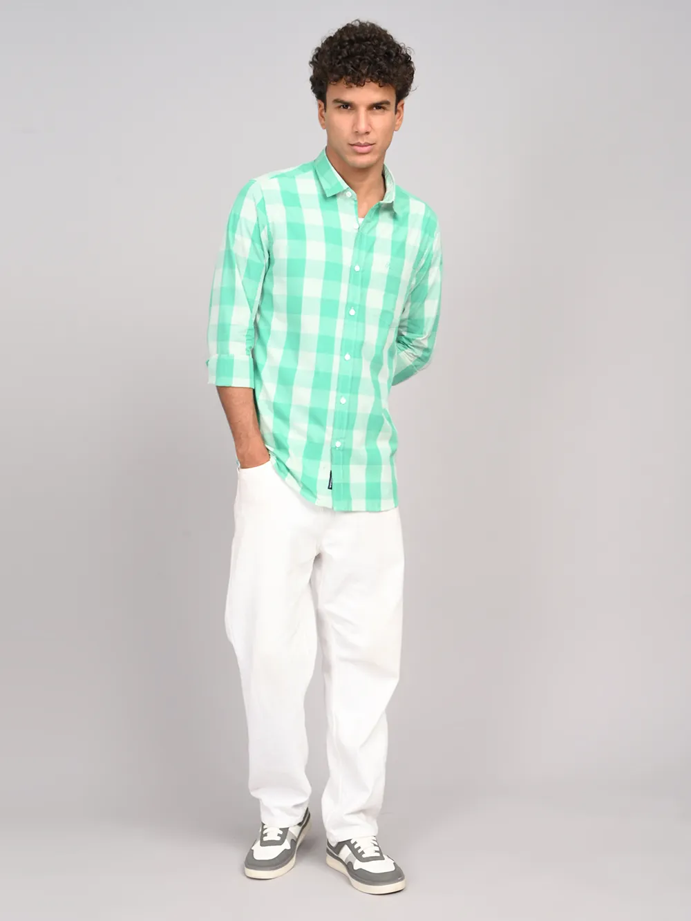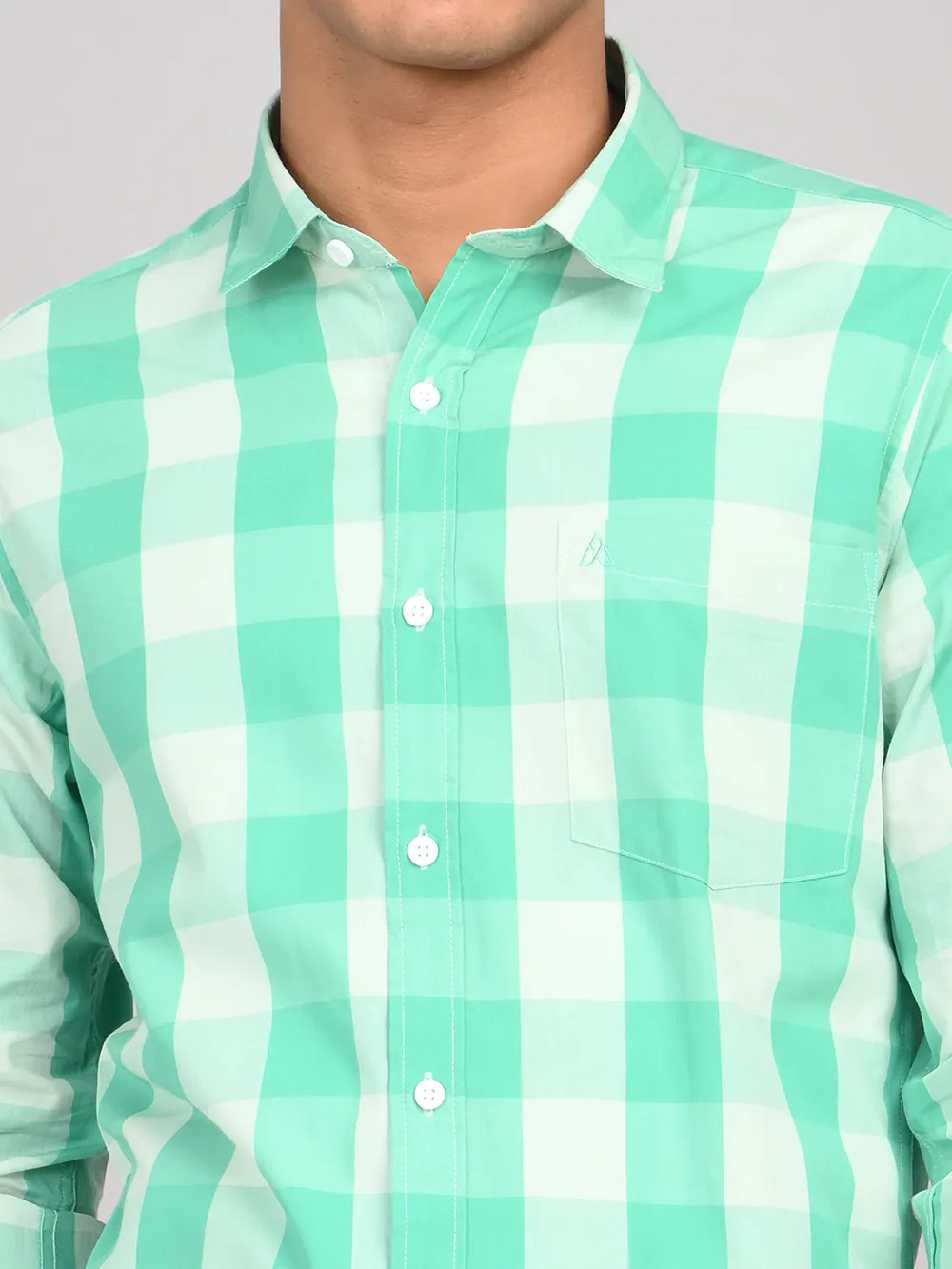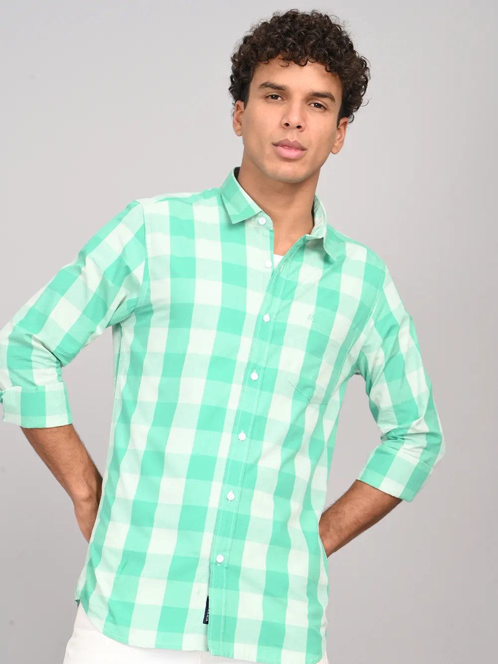 Add a touch of bold sophistication to your wardrobe with this stylish Green Big Check Cotton Shirt. Designed to blend comfort and elegance, this shirt features an eye-catching large check pattern in refreshing green tones that make a statement wherever you go. Crafted from premium-quality cotton, it offers exceptional softness, breathability, and all-day comfort. The smart collar and full sleeves enhance its versatile appeal, making it perfect for both formal gatherings and casual outings. Pair it with jeans or trousers for a confident and effortlessly polished look.