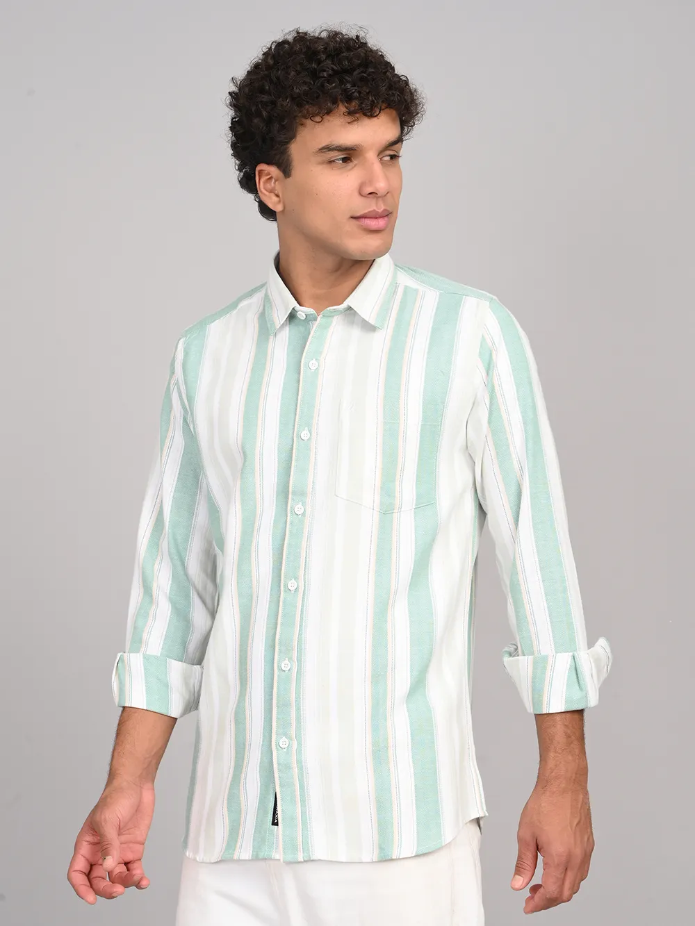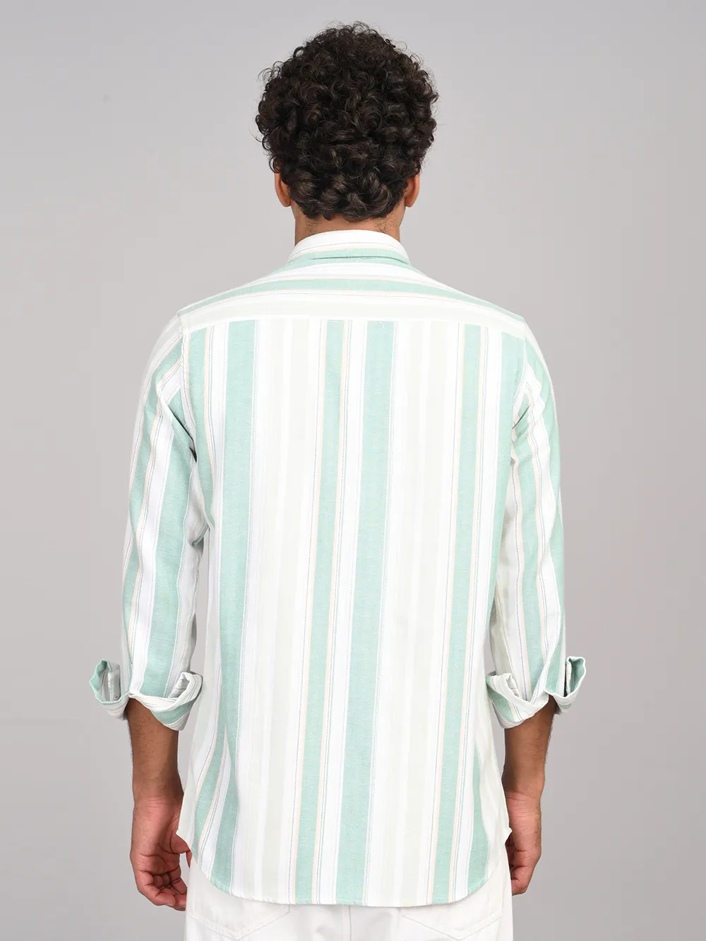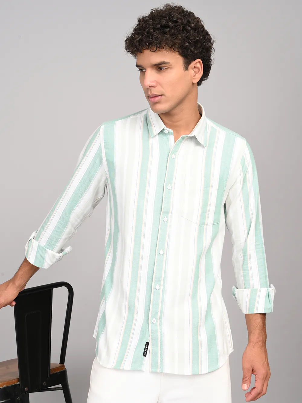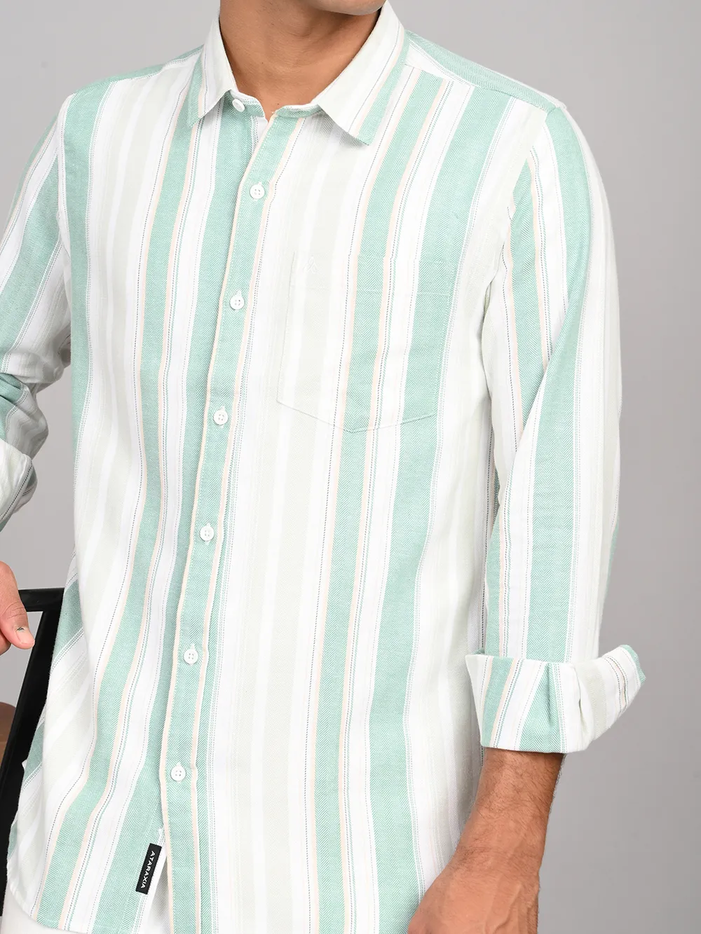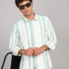 ATARAXIA Presents Green & White Stripe Cotton Shirts for Men.