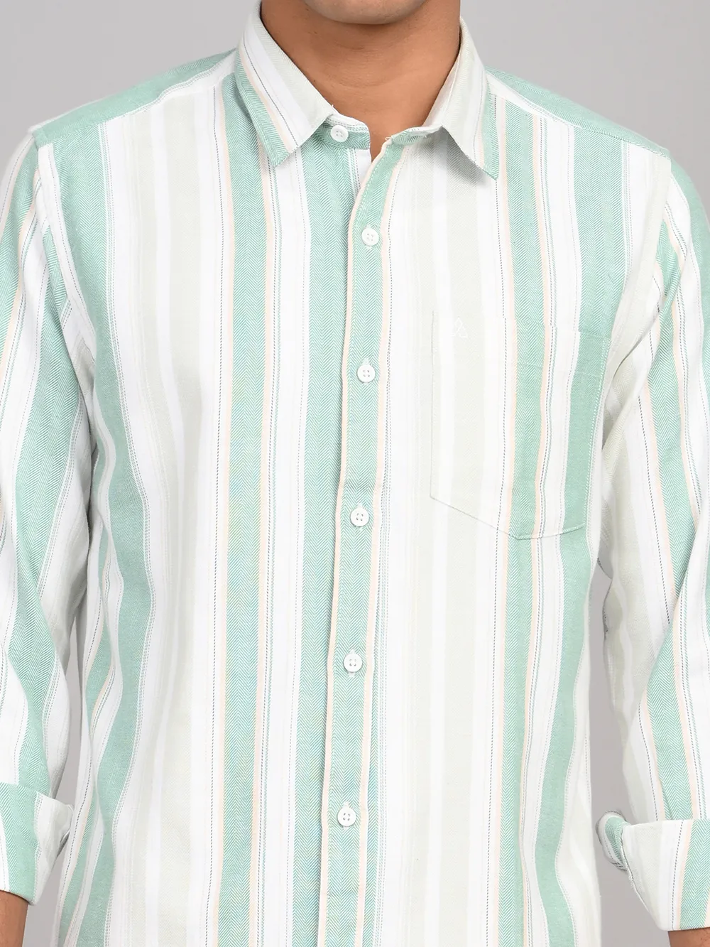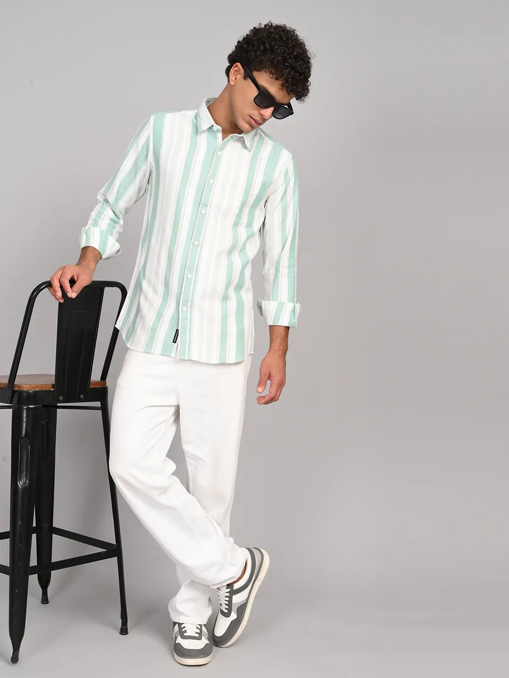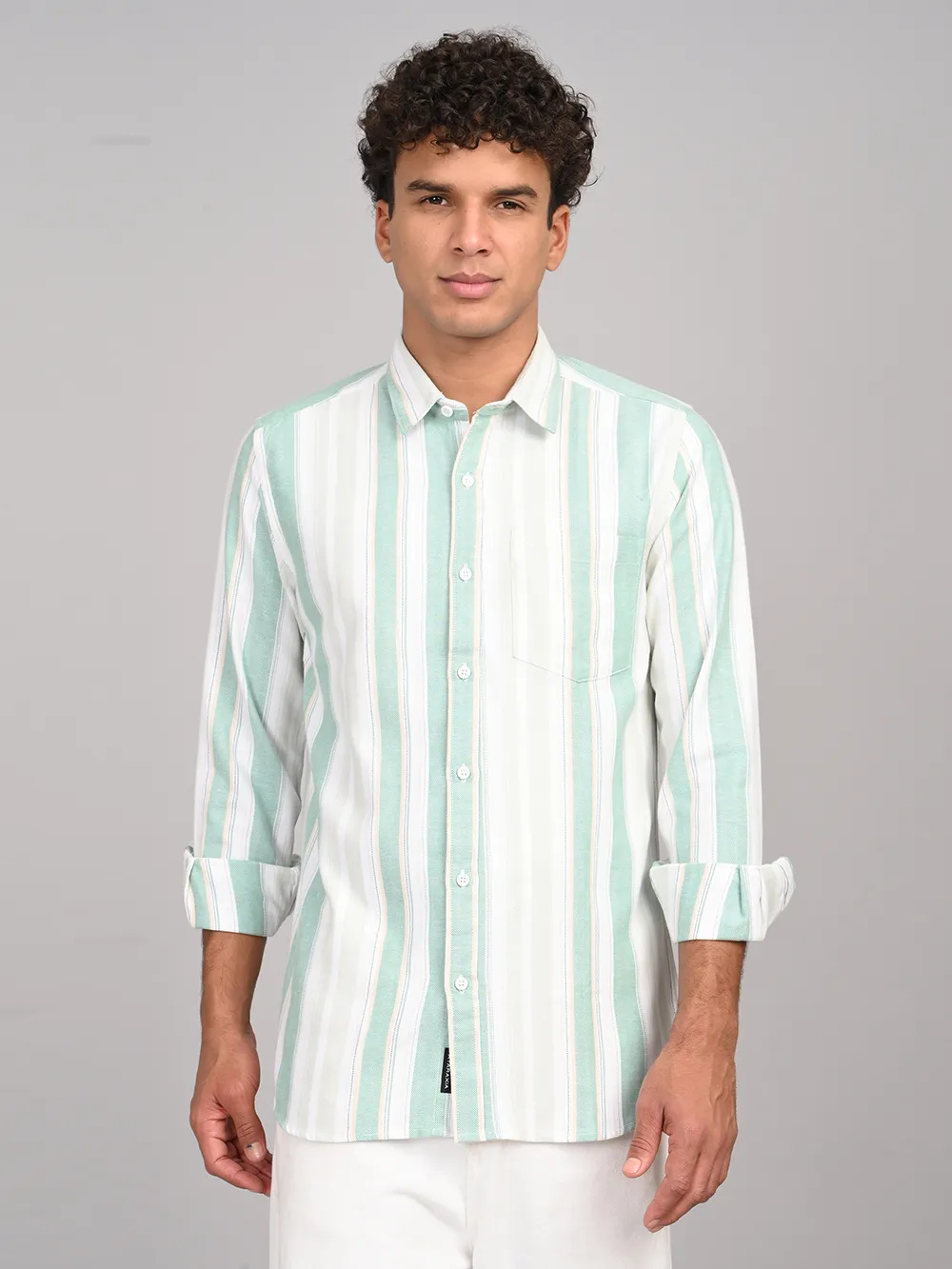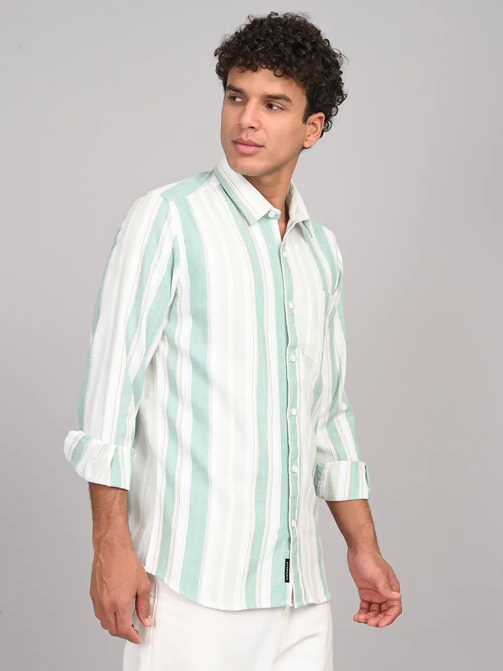 ATARAXIA Presents Green & White Stripe Cotton Shirts for Men.