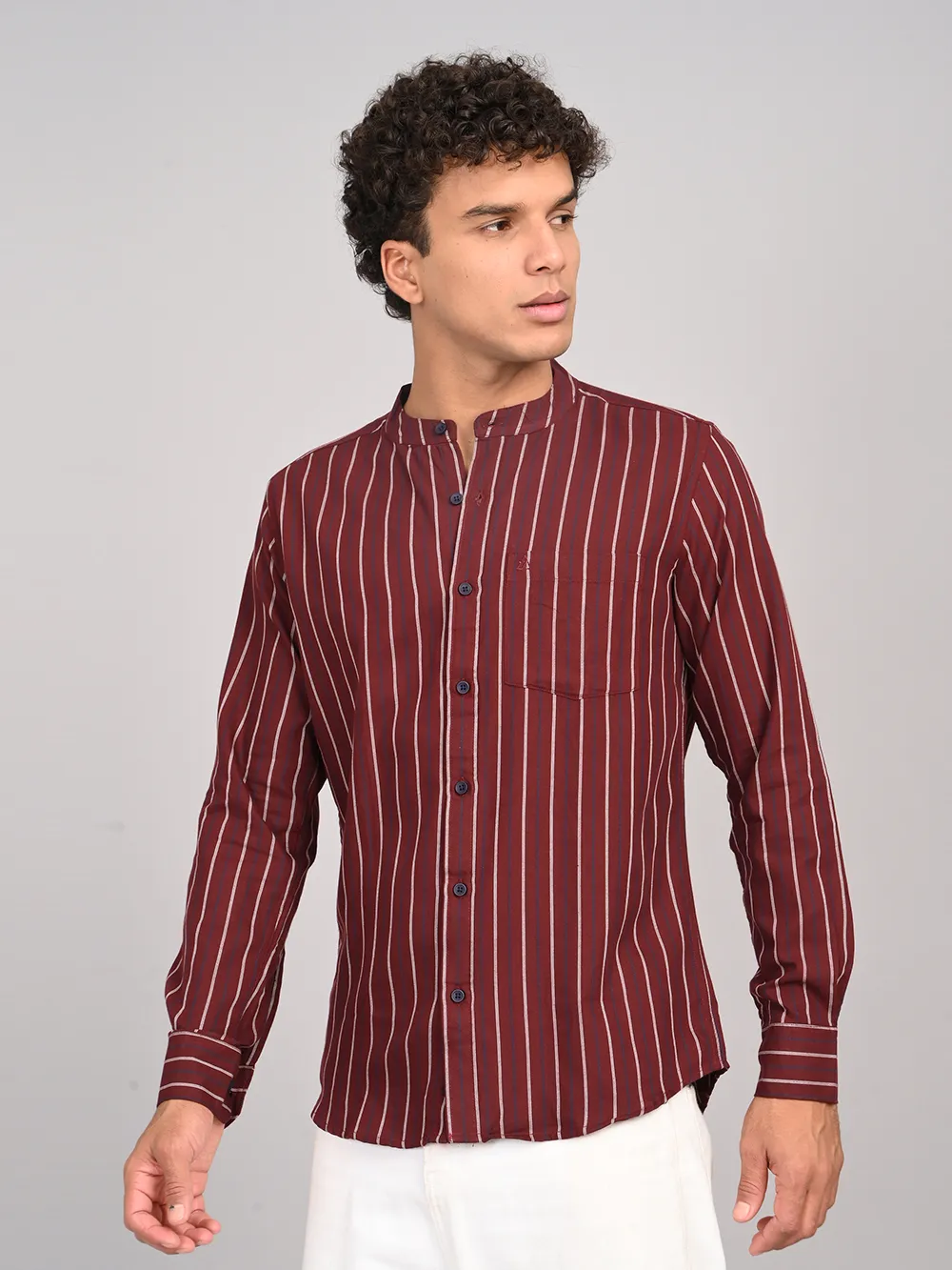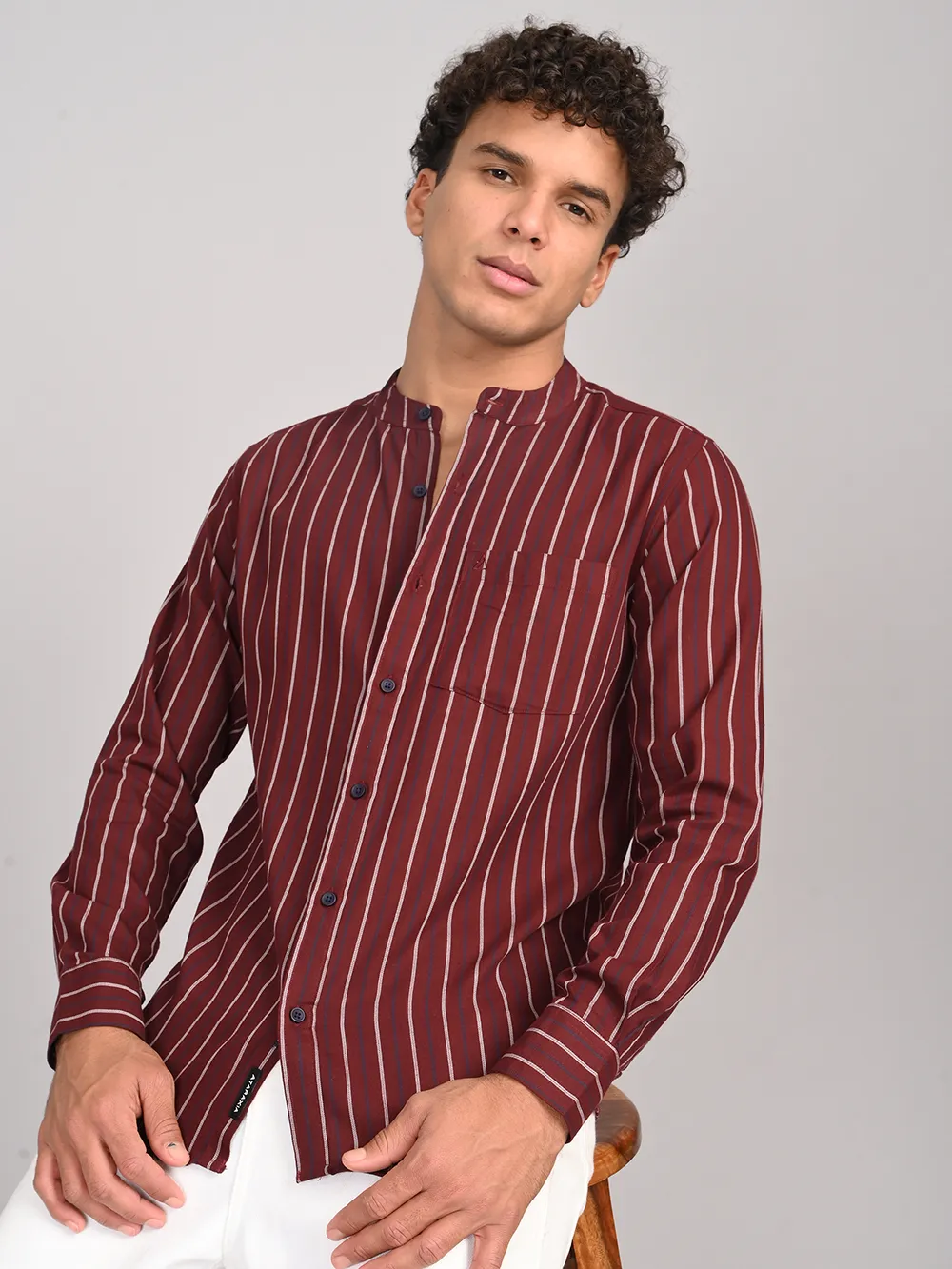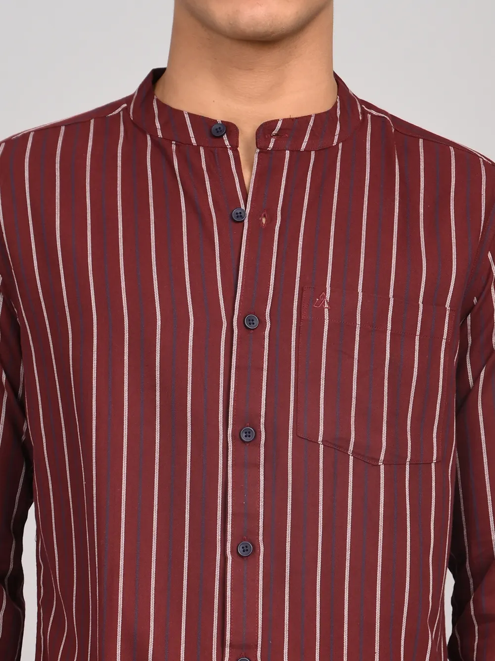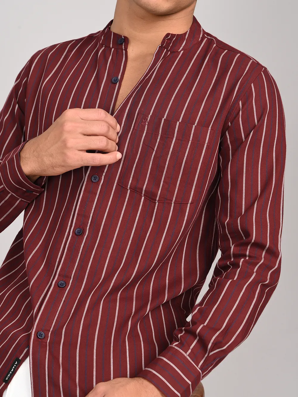 ATARAXIA Presents Maroon & White Stripe Cotton Shirts for Men.