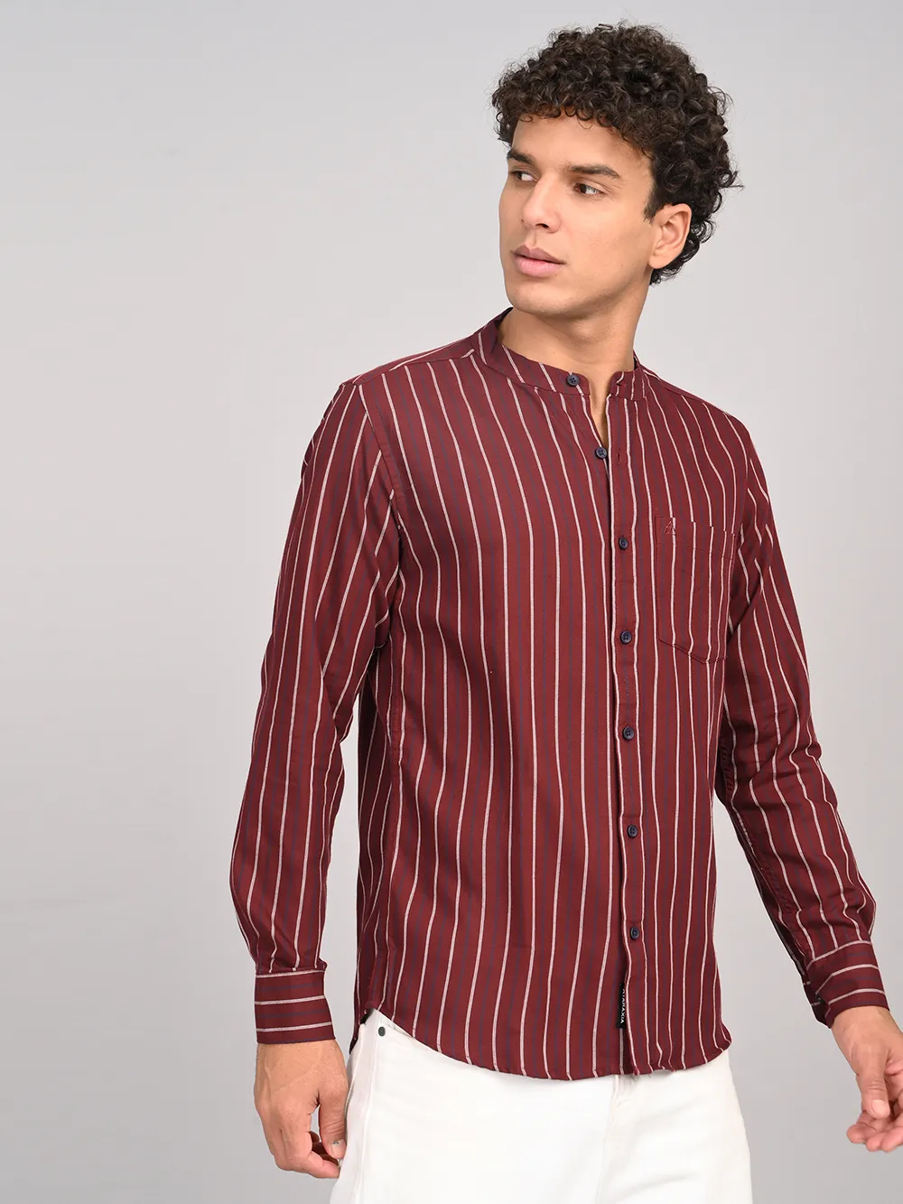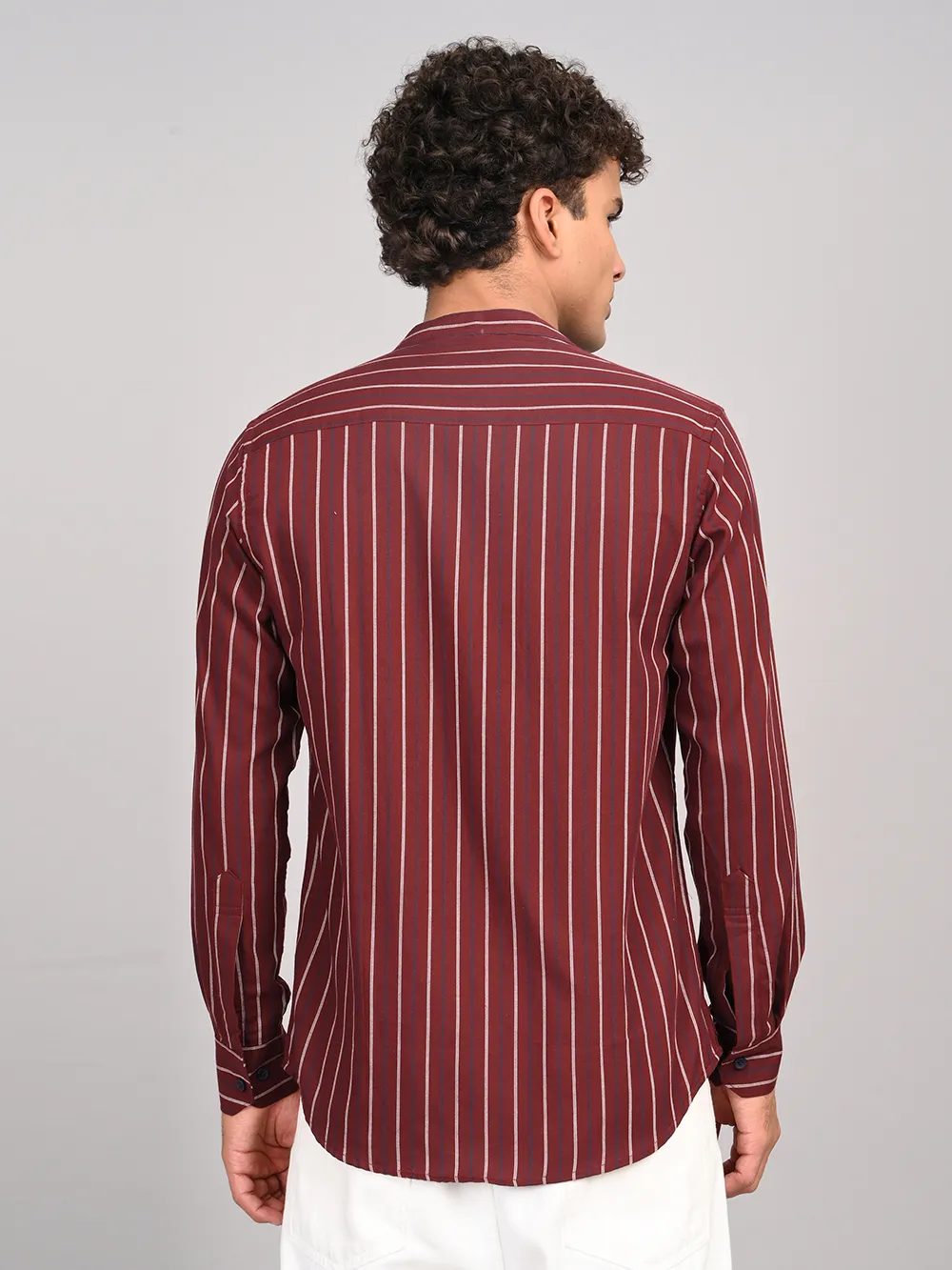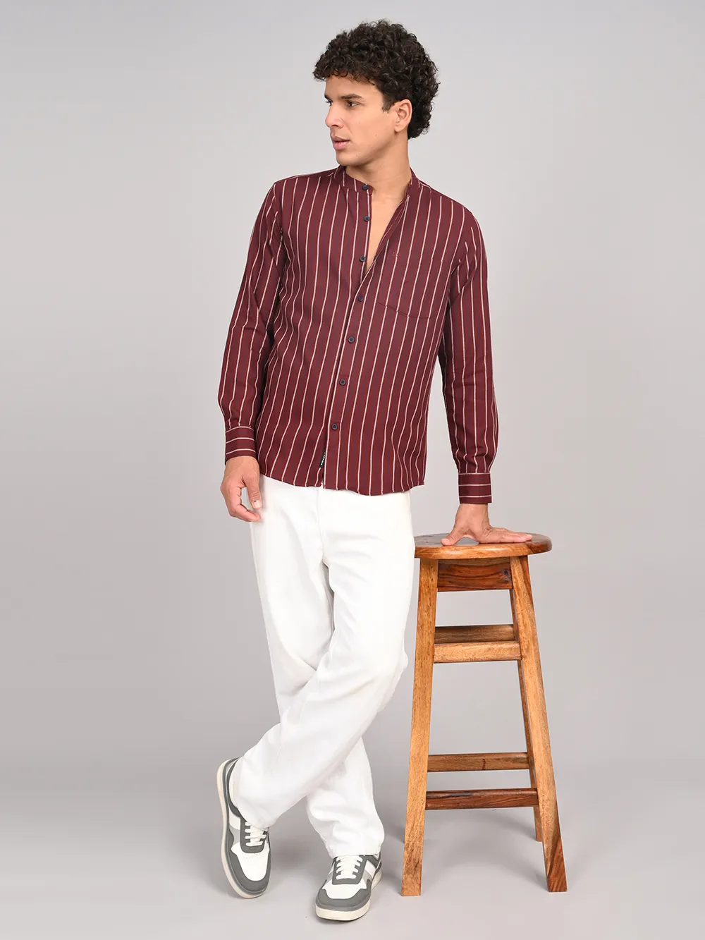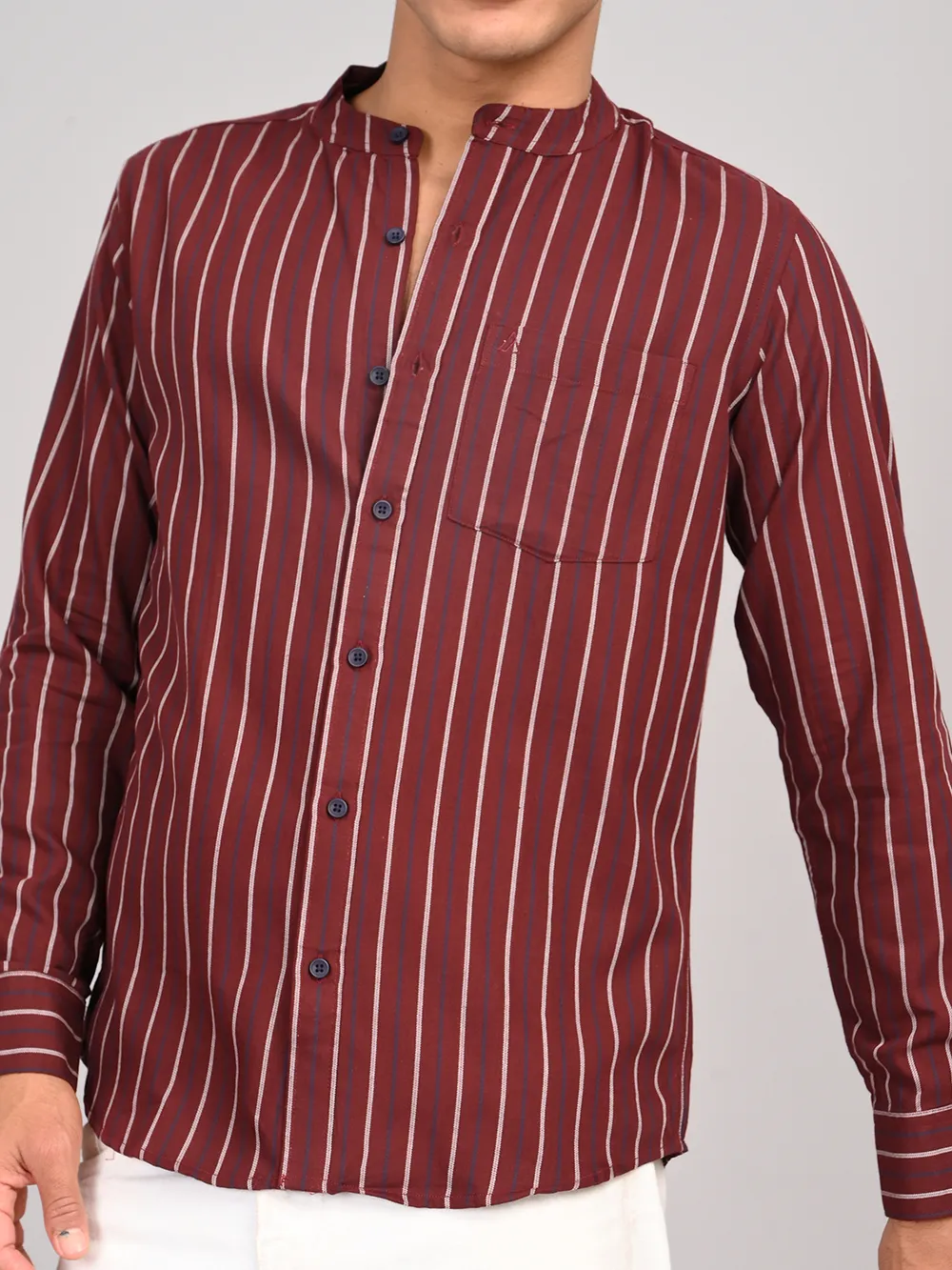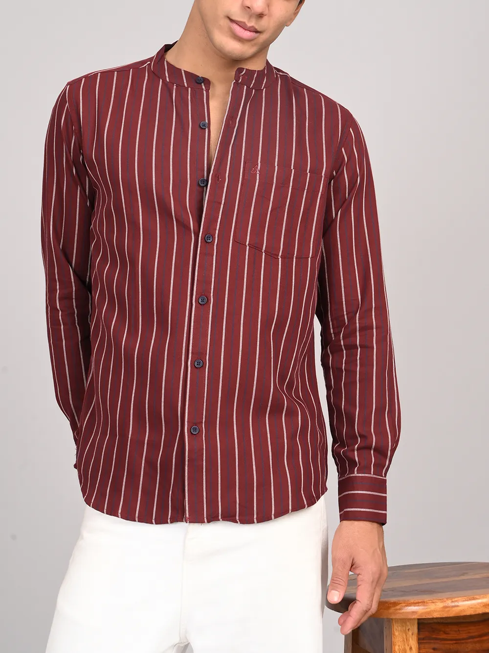 ATARAXIA Presents Maroon & White Stripe Cotton Shirts for Men.