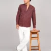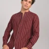 These men’s shirts feature full sleeves and a smart collar style. The captivating combination of maroon and white stripes creates a striking visual appeal that is sure to turn heads wherever you go. Crafted from high-quality cotton, these shirts provide exceptional comfort and breathability, making them ideal for any occasion. Whether you’re attending a formal event or enjoying a casual outing with friends, these shirts seamlessly combine style and comfort to elevate your look.