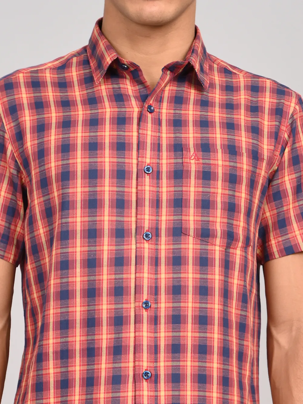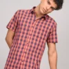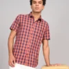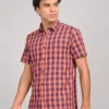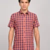 ATARAXIA Red & Blue Check Half Sleeve Regular Fit Cotton Shirt for Men